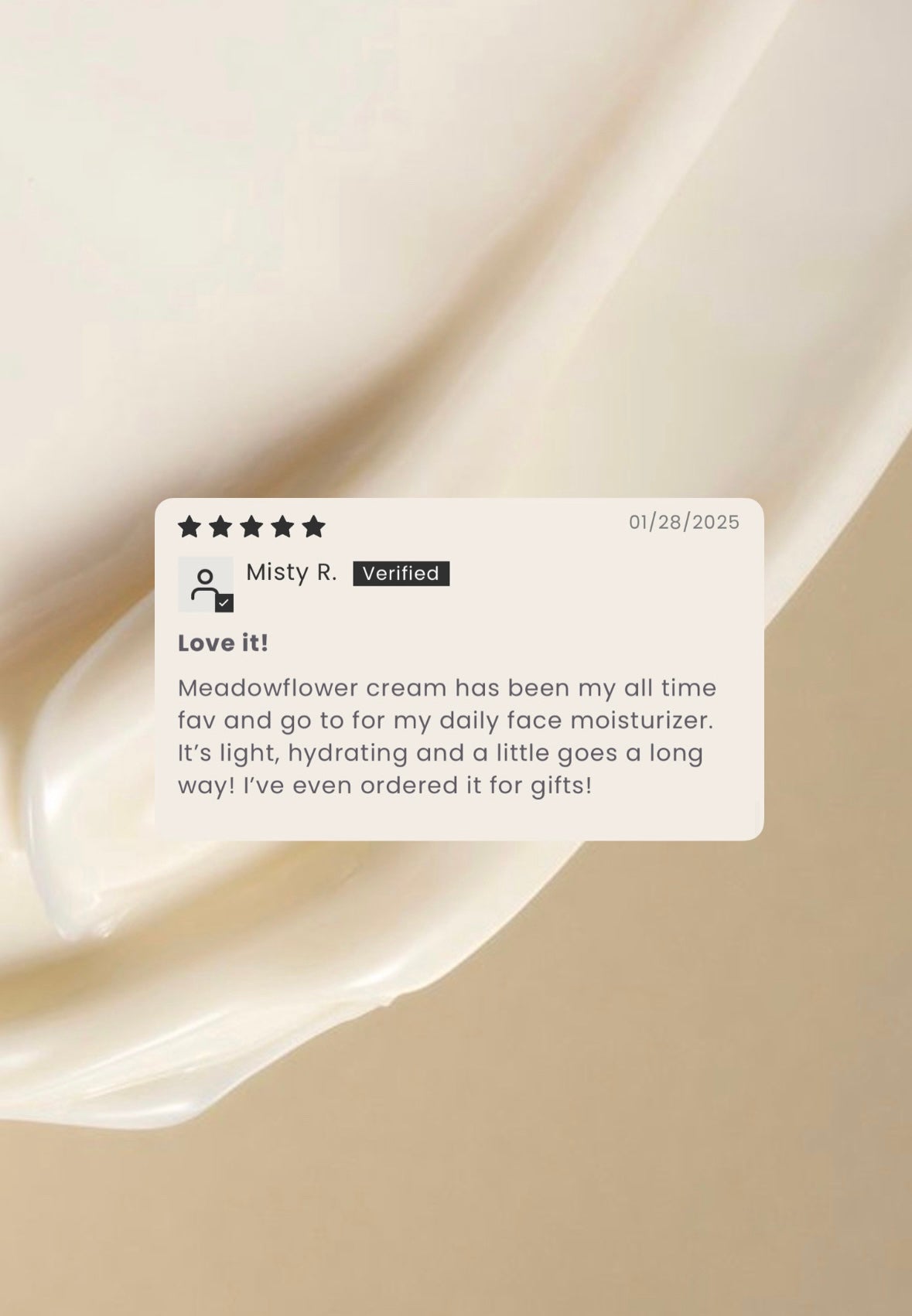 Our most luxurious cream. Great for targeting fine lines, wrinkles, stretch marks/scars, acne, rosacea, eczema and everything in between. This is formulated with rosehip oil and meadowfoam oil which are used to increase hydration and reduce discoloration from stretch marks & scarring.