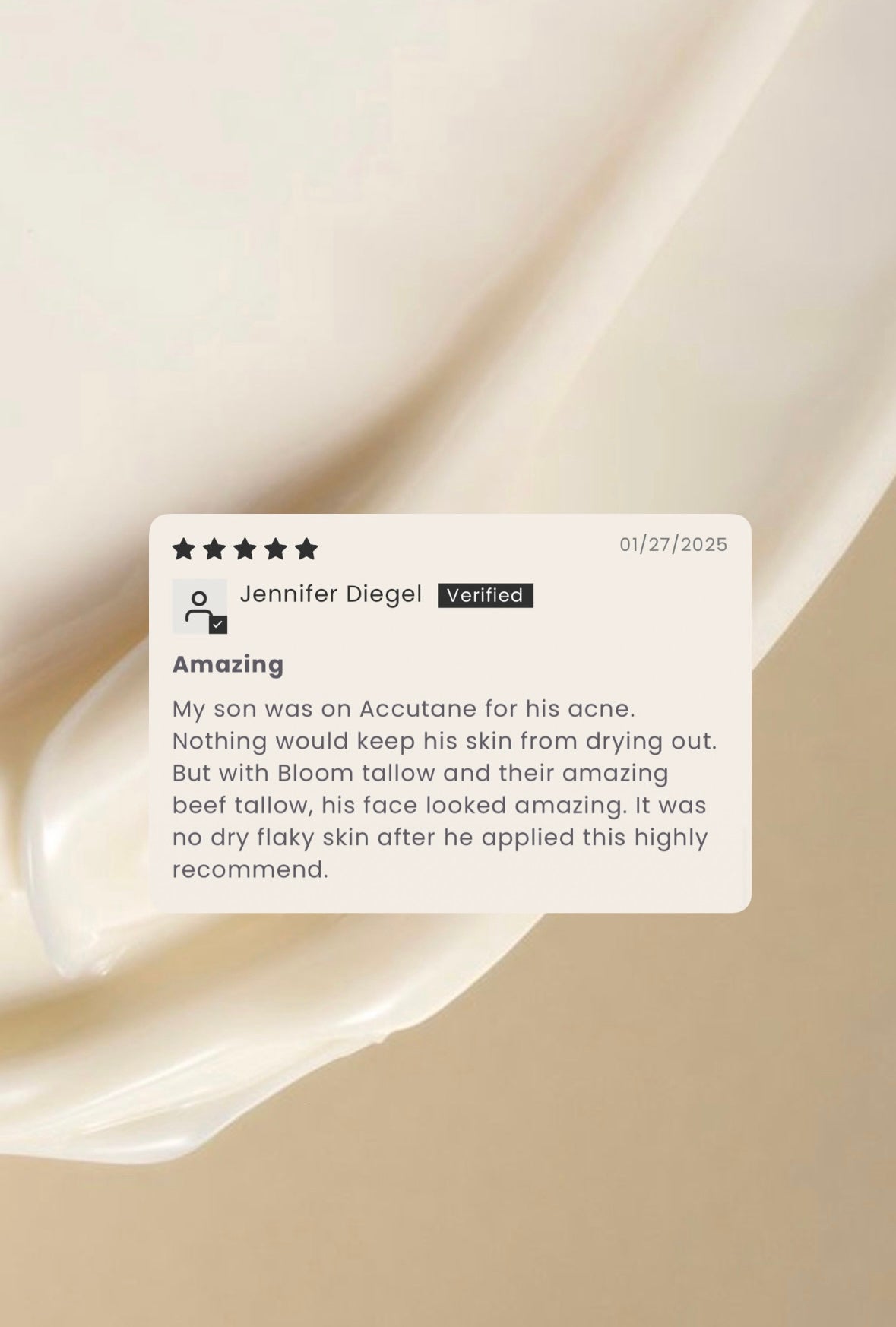 Made of 100% Grass-Fed/Grass-Finished Tallow, Cold-pressed Unrefined Meadowfoam Oil, 100% Pure Australian Emu Oil, Unrefined Cold-pressed Organic Rosehip Oil, and Organic Lavender Essential Oil. This product will leave your skin feeling luxuriously moisturized and supple.